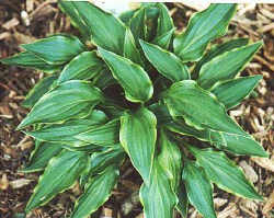 Du style bacon, cet hosta vert margine blanc est tres ondule et twiste.